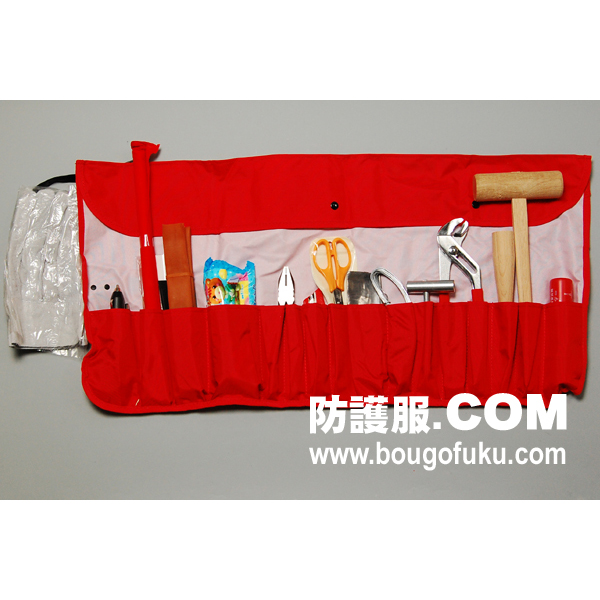 上記工具ならびに工具ケースを収めるための専用バッグです。 火災時には、消火用バケツとしても使えます。 |